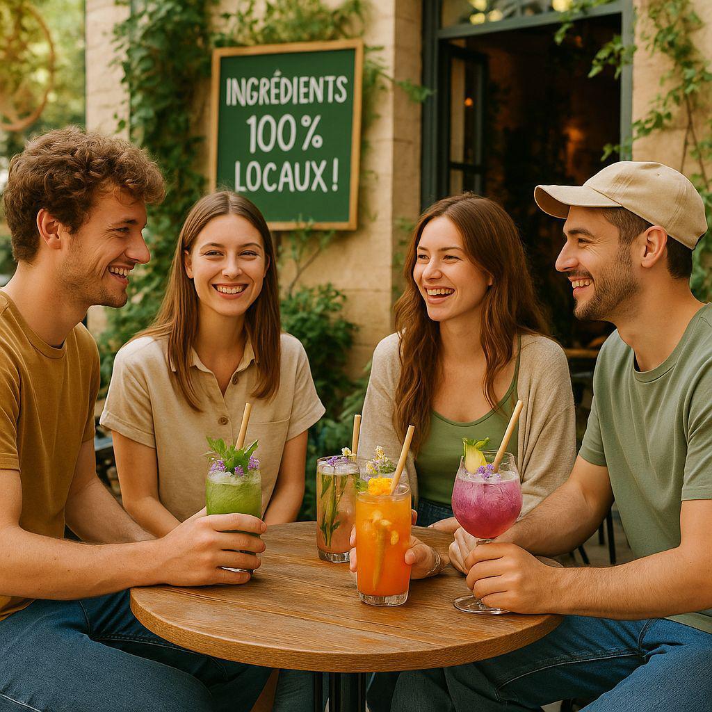 Du terroir au verre : le consommateur apprécie la démarche des produits locaux (de la Verrerie "Made in France", aux ingrédients et Marques de boissons de la recette, jusqu'à la garniture).