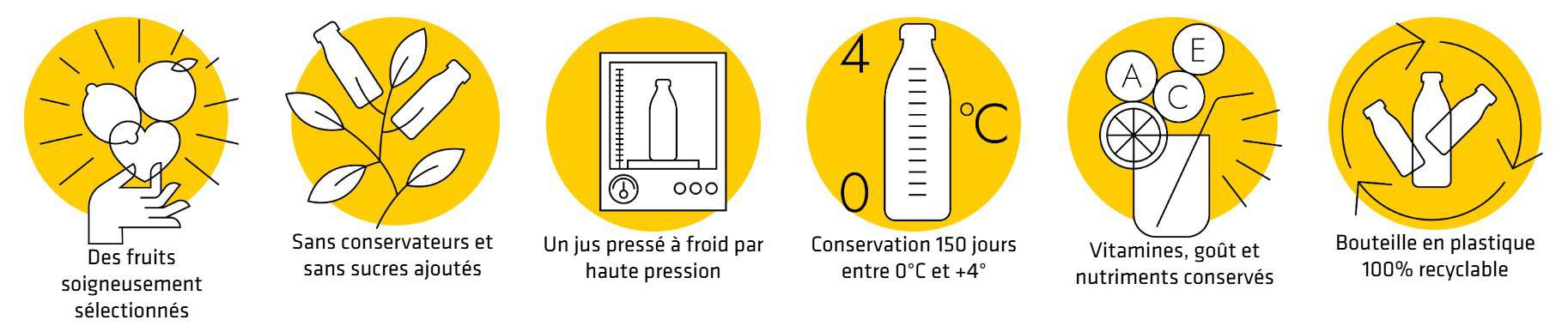 Soit en pur jus, soit en jus de fruits associés à d'autres ingrédients pour faire des détox, ou encore des mélanges de différents fruits pour un goût inégalé :