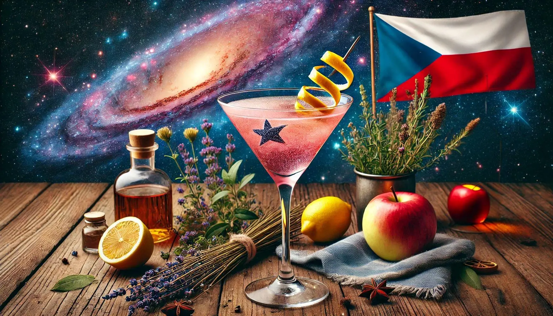 Becherovka + Calvados + Jus de Citron Jaune + Grenadine + Fee Brothers Orange Bitters. FACILE à préparer. TAUX D'ALCOOL : 15 à 20°. COUT : 2 à 3€. SAVEURS : Sucré, Végétal, Acidulé, Citronné. 200 à 300 Calories. Recette et Ingrédients du Cocktail Czech Up