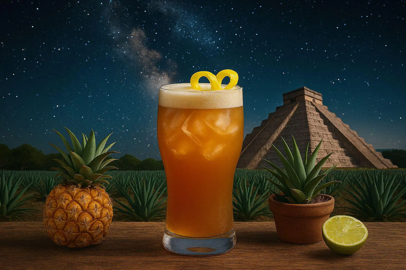 Bière Sans Alcool Tourtel Twist Ananas Citron Vert + Tequila + Jus de Citron Vert + Sirop de Canne. FACILE à préparer. TAUX D'ALCOOL : 5 à 10°. COUT : 1 à 2€. SAVEURS : Doux, Fruité, Menthe. 100 à 200 Calories. Recette et Ingrédients du Cocktail Mexico Mousse :
