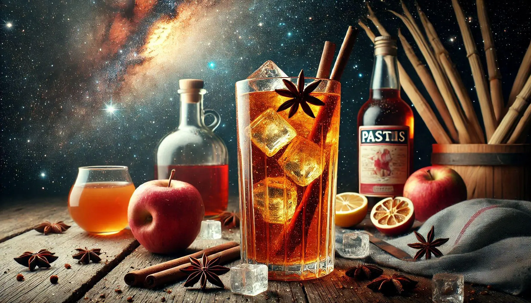 Pastis + Jus de Citron Jaune + Jus de Pomme + Sirop de Canne. FACILE à préparer. TAUX D'ALCOOL : 5 à 10°. COUT : Moins de 1€. SAVEURS : Sucré, Anisé, Acidulé, Fruité, Citronné. 100 à 200 Calories. Recette et Ingrédients du Cocktail Pastis Normand :