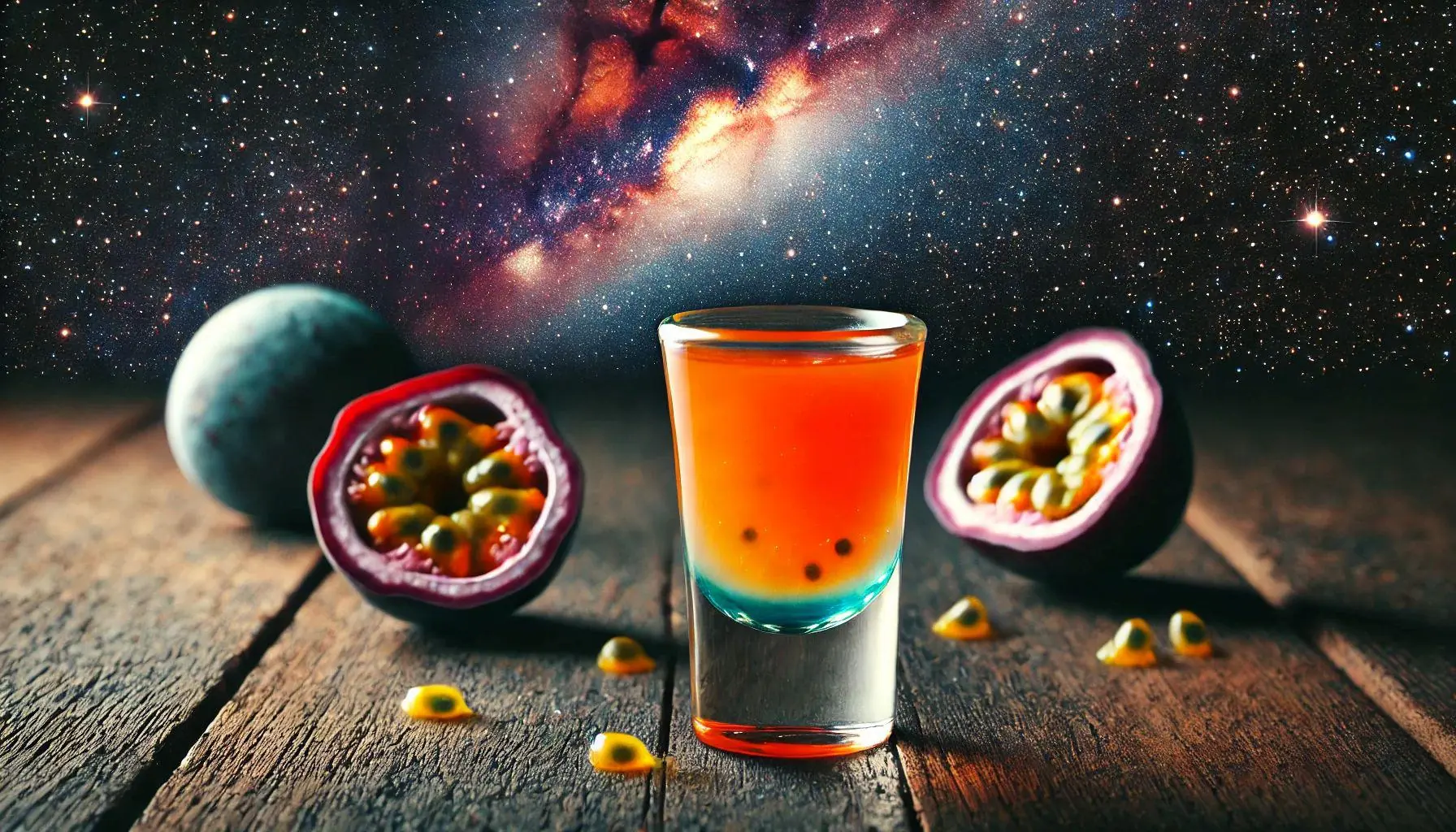Vodka + Jus de Fruit de la Passion. FACILE à préparer. TAUX D'ALCOOL : 15 à 20°. COUT : Moins de 1€. SAVEURS : Sec, Fruité. Moins de 100 Calories. Recette et Ingrédients du Cocktail Shot Passion Scalp :