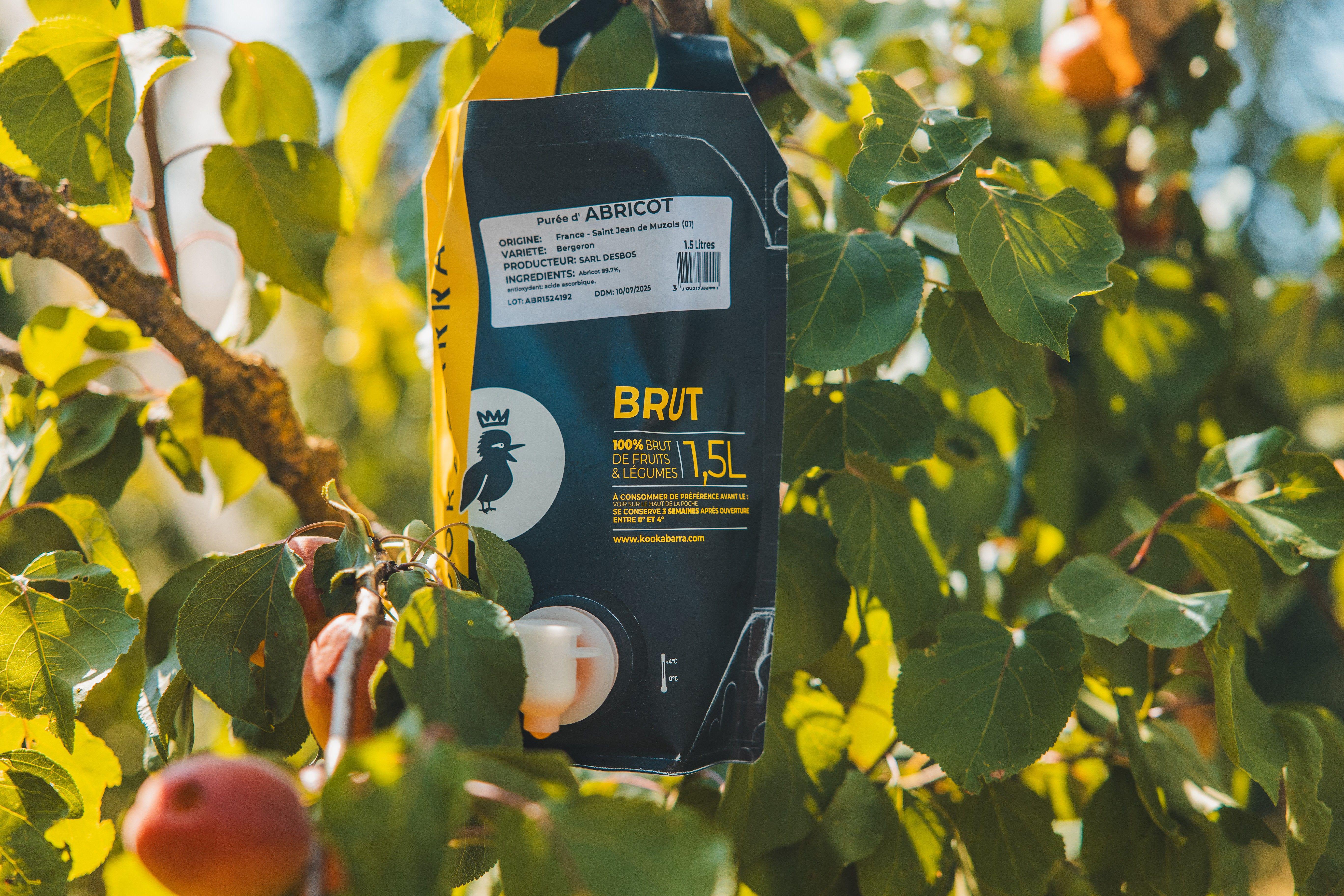 Les Purées de Fruits Frais de Kookabarra coûte selon les fruits de 18 à 30 euros TTC l'écobag de 1,5 litre (Tarif Avril 2026) soit de 12 à 20 euros le litre de purée de fruits.